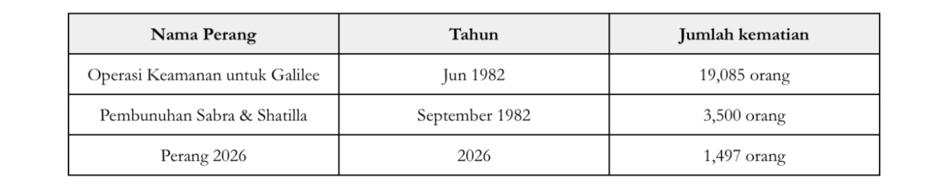 Ketika penulisan ini dilakukan, Lubnan telah memasuki hari ke-42 diserang oleh Israel dan tidak ‘terselamat’ dalam perjanjian gencatan senjata AS-Iran walaupun Iran memaklumkan negara itu terlindung dari sebarang ancaman di bawah perjanjian tersebut. Angka kematian dan kecederaan di Lubnan sepanjang krisis terbaharu itu mencatatkan rekod yang tinggi dan antara yang terburuk sejak Operasi Keamanan untuk Galilee pada Jun dan Pembunuhan Sabra & Shatila pada September tahun yang sama – 1982. Apa yang berlaku di Lubnan, terutama di sempadan bukanlah sesuatu yang baharu tetapi jauh lebih teruk jika dibandingkan dengan pertelingkahan dalam setahun kebelakang, dan ketiga teruk selepas tragedi Sabra & Shatila.